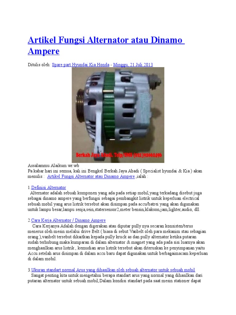 Dinamo ampere mobil alternator mobil alternator dinamo ampere adalah peralatan elektromekanis yang mengkonversikan energi mekanik menjadi energi listrik arus bolak balik. Mobil menjadi bermasalah dan bisa mogok secara tiba tiba. Kerusakan pada dinamo ampere mobil bisa anda tangkap mulai dari indera. Sedangkan untuk dinamo ampere atau alternator pada mobil memiliki fungsi untuk mengisi setrum aki sebagai sumber energi listrik untuk mensuplai kebutuhan tenaga listrik mobil saat mesin hidup.